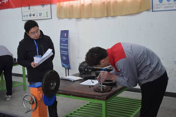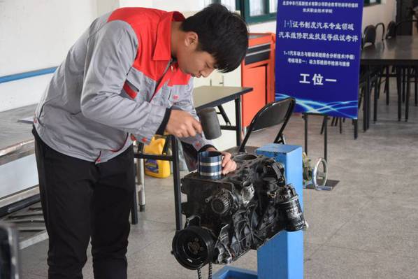 本次考试共有56名学生报名参加,设置4个考场,8个考试工位,每个考生须通过4个项目的测试,每场考试30分钟。考试中,56名考生连续作战,精神饱满,沉着冷静,严肃认真,考务和设备技术保障人员各司其职,考试整车、台架运行良好,考试过程严谨有序。考试过程全程摄像,实时上传动态考核视频,考生按照考试翻转表进行轮换操作考试。