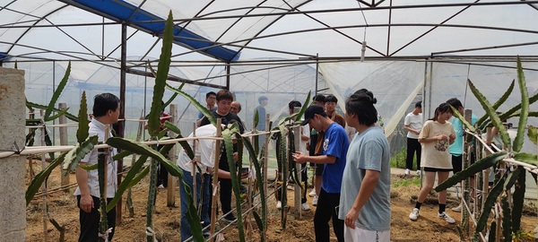 座谈会上,沈大风所长从“三品一标”申报条件、监管现状及未来发展趋势等方面给同学们上了生动的一课。会后,沈大风所长带领同学们参观了安庆高老庄生态农业有限公司的葡萄、火龙果、无花果等种植基地,对该公司“三品一标”品种种植规范等进行了详细讲解,并对同学们现场提出的问题及时答疑解惑,加深同学们对课本知识的理解。