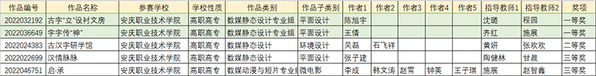6月11日,2022年中国大学生计算机设计大赛安徽省级赛评审结果出炉,安庆职业技术学院信息技术学院沈璐、程园老师指导陈旭宇同学创作的《古字“立”设衬文房》,以及由齐红、施展老师指导王倩同学创作的平面设计作品《字字传“神”》均获得数媒静态设计专业组平面设计类一等奖,另有多幅作品获得等级奖。沈璐老师获“优秀赛务工作者”称号。