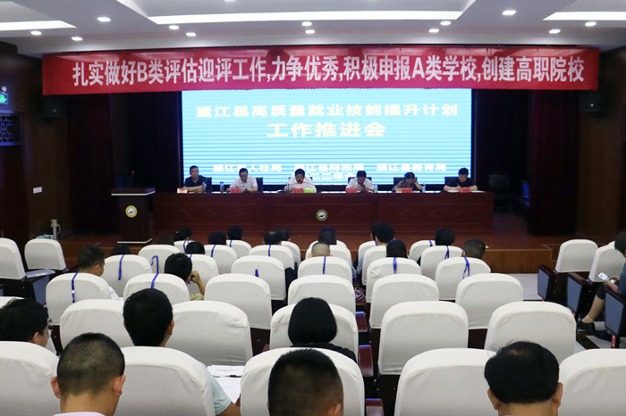 为贯彻习近平总书记大力发展技工教育重要指示精神,认真总结的经验,研判形势、分析问题,坚定发展方向,深化改革落实,进一步推动县域技工教育的发展,6月1日,望江县人力资源和社会保障局、县教育局、县财政局联合在望江县劳动技工学校召开全县高质量就业技能提升计划工作推进会。县委民生工程推进工作专班组长董开宝出席会议并讲话,县人社局党组书记、局长王庭真,县教育局党委委员、副局长陈刚,县人社局党组成员、总经济师胡权兵,县财政局社保股股长刘卫君,县人社局就业股股长、民生办主任杨光,望江县劳动技工学校董事长吴灿及各乡镇分管负责人参加会议。会议由县人社局党组书记、局长王庭真主持。