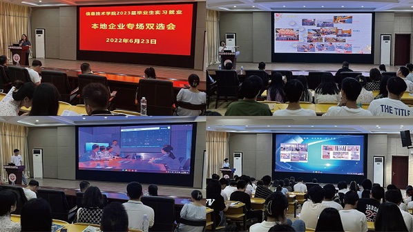 为给学生搭建一个良好的实习就业平台,全力保障学生的实习就业需求,在规范做好疫情防控工作的基础上,623日,安庆职业技术学院信息技术学院在2号教学楼成功举办了2023届毕业生实习就业本地企业专场双选会。