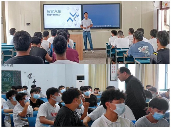 9月4日,机电工程学院联合安庆振宜汽车有限公司、安庆福莱克斯动力科技有限公司在1号教学楼202、203教室分别召开了企业宣讲会。21级新能源汽车技术两个班级和汽车检测与维修技术班全体学生参加宣讲会。