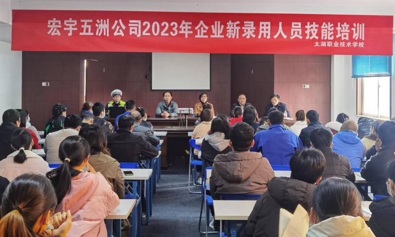为更好地服务县域经济发展,提高企业新员工技能水平,3月2日上午,太湖职业技术学校承办的宏宇五洲公司2023年企业新录用人员技能培训班顺利开班。