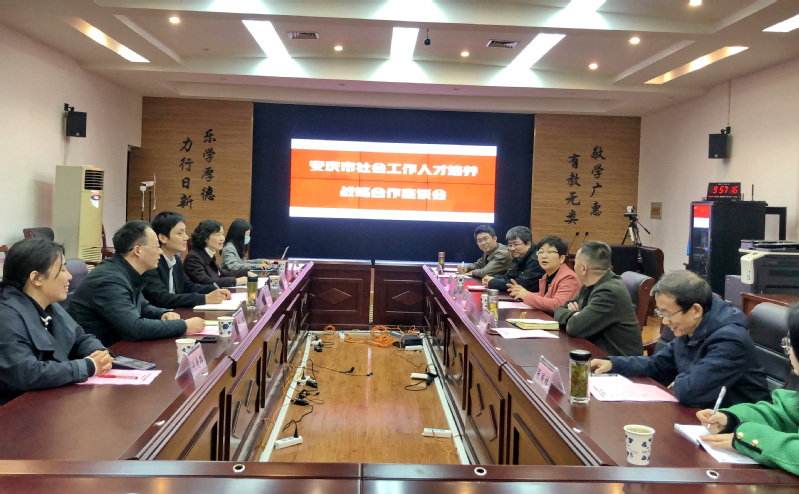 3月8日上午,安庆市社会工作人才培养战略合作座谈会在安庆开放大学召开。安徽开放大学招生与系统建设办公室主任、学生处处长李秀华,安徽开放大学开放学院副院长马宁,安徽民政开放学院副院长、合肥市社区治理学院负责人周军,安庆市民政局党组成员、副局长鲁虹,安庆开放大学党委书记、校长曹劲松,党委委员、副校长王佩捷及各方相关部门负责人参加座谈。