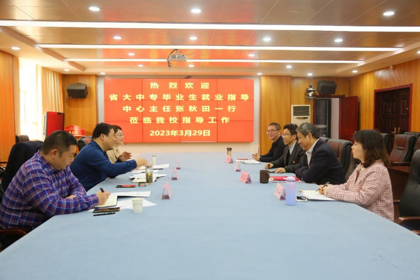 3月29日,安徽省大中专毕业生就业指导中心张秋田一行3人到安庆职业技术学院进行就业工作调研,安庆职院党委副书记、校长毕明生,党委副书记李克让会见了调研组并与他们进行了充分交流。学校招就处相关负责同志参会。