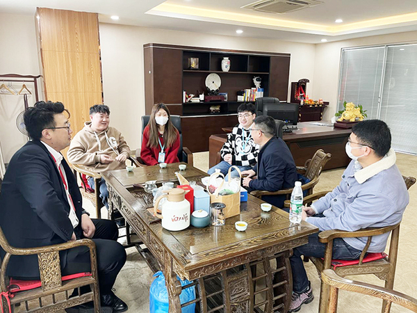 在玉臻集团,到访人员参观考察了企业办公环境,详细了解企业招聘的人才类型、人才需求和素质要求,并就学生实习、就业岗位、晋升空间、福利待遇、生活条件等进行深入交流,初步达成了学生实习和就业合作意向。