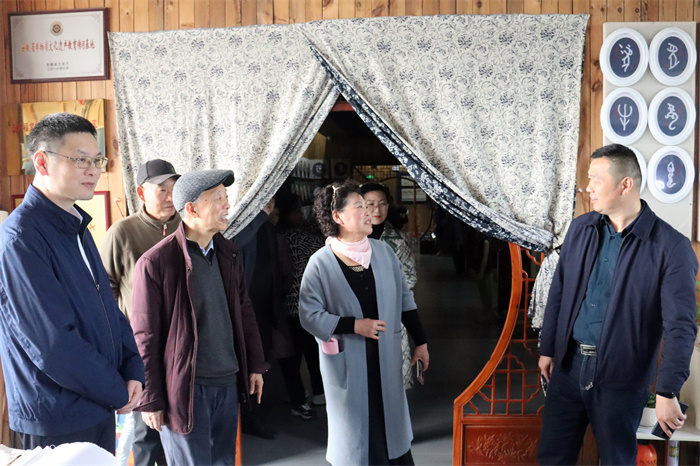 许厚今一行参观考察了该校国家非遗望江挑花保护与传承基地,详细了解望江挑花保护与传承及产业发展情况。在随后召开的非遗文化传承调研座谈会上,高炬对许厚今一行到望江县参观考察表示了诚挚欢迎,希望能够积极宣传推介望江挑花,同时对望江文化发展多提宝贵意见和建议。吴灿简要介绍了学校发展历程,就国家非遗望江挑花保护与传承现状、市场化运作规划等情况作了汇报。当听闻该校近年来先后获批为全国中小学中华优秀传统文化传承学校,荣获省级“双比双争”先进社会组织党支部,对口高考本科升学率稳居全市第一,高标准通过安徽省中职学校办学水平B类评估给予高度赞扬并表示了祝贺。