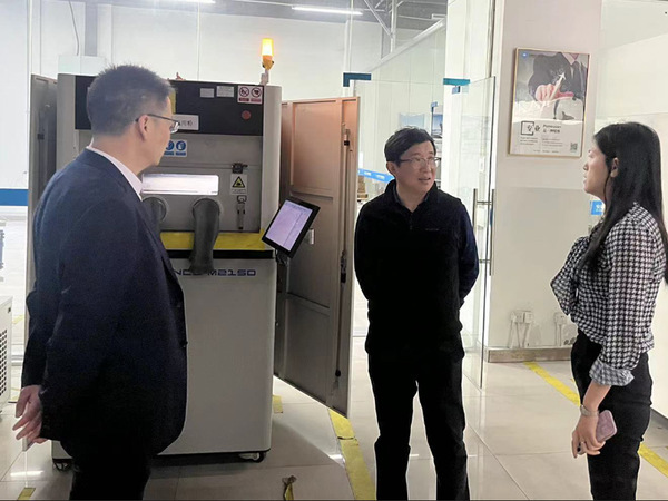 在企业负责人的引导下,一行四人走进加工车间,了解到企业生产现状、制作工艺以及3D打印成品的流程等细节。并与企业负责人面对面,在人才培养、专业建设、实习实训等方面进行交流,双就进一步强化校企合作打成了初步意见。
