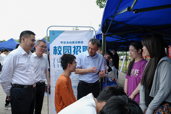 童宏葵首先来到安庆中安龙山建设集团有限公司宣讲台前,仔细询问该公司用工需求情况,当得知该公司与安庆职院长期开展专业共建和人才培养,目前还有10余名该校历届毕业生在该公司工作时,非常高兴,对前来应聘的实习生说:目前建筑行业高质量的就业岗位紧缺,希望同学们把握机会,选择优质企业发展。