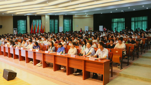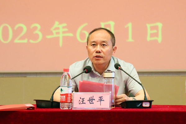 在同学们热烈的掌声中,汪世平作了热情洋溢的讲话,他真诚期待安庆职院学子手执“青春之笔”,书写“人生答卷”,共绘“迎江画卷”。他介绍了迎江区近年来的经济社会发展情况,迎江区GDP连续两年全市第一,世界500强的中化、中国500强的超威、投资超百亿的衡川、全省民营企业100强的运通达都深耕在迎江。数千名大学毕业生已成为新迎江人,他们用挥洒汗水的青春,让迎江焕发时代的张力。他说,安庆职院与迎江有着不解之缘,他详细介绍了安庆职院毕业生在迎江发展的故事,如2011届校友郭志强“创业迎江”、2022届校友李欣“成长迎江”、43名历届毕业生“还巢迎江”,他们身上散发出的务实的作风、精湛的技能、敬业的精神,给迎江留下深刻的印象,安庆职院的同学们是我们迎江最渴望的人才,希望大家做迎江发展的最铁合伙人,欢迎同学们落户迎江、服务迎江、扎根迎江。
