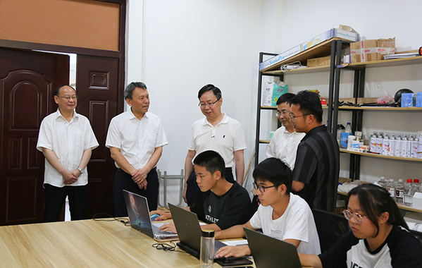 胡红兵详细了解志愿服务团队活动开展情况,认真听取了该校信息技术学院第一党支部近期工作以及省级技能大师工作室工作开展等情况汇报,并亲切慰问了教师代表,对他们的辛勤付出表示感谢。
