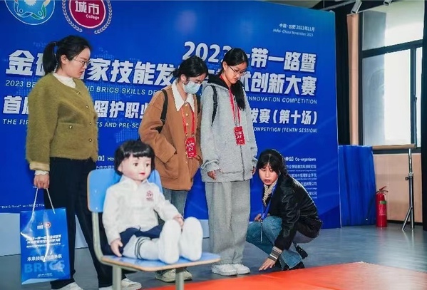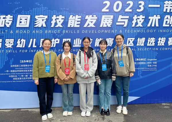 11月12日,来自安徽省、湖北省、河南省31所高职院校的59名参赛学生在3天赛程中分组展开理论与技能比拼,通过紧张激烈的角逐,由金砖国家工商理事会中方理事会、一带一路暨金砖国家技能发展国际联盟、中国科协一带一路暨金砖国家技能发展与技术创新中心、教育部中外人文交流中心等主办,金砖国家工商理事会技能发展工作组承办的2023“一带一路”暨金砖国家技能发展与技术创新大赛首届婴幼儿照护职业技能赛项区域选拔赛在安徽城市管理职业学院落下了帷幕。由安庆职业技术学院管理服务学院朱菲菲老师领队、甘建玲、张芳两位指导老师带队,喻心意、张双茂两位同学组成的安庆职业技术学院代表队分别荣获个人赛二等奖与三等奖。