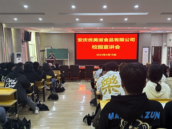 为拓宽就业渠道,为毕业生搭建高质量的就业平台,4月19日下午,安庆职业技术学院农林与服装学院邀请安庆优美滋食品有限公司来学院举办专场宣讲会。该院长李进恩出席了宣讲会,2022级食品质量与安全专业的130多名学生参加。