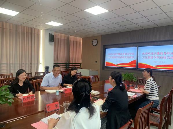 5月10日下午,安徽国际商务职业学院文化旅游学院党总支副书记李冬一行3人到安庆职业技术学院管理服务学院调研,并进行座谈。管理服务学院学生工作、教学工作负责同志,酒店管理与数字化运营专业老师代表参加了座谈交流。