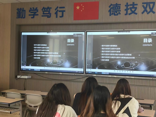 6月6日中午,安庆职业技术学院管理服务学院酒店管理与数字化运营专业的企业课堂开讲。本期企业课堂邀请到的主讲嘉宾是上海祥源希尔顿HR刘晓雨和前厅总监叶义军,讲座主题为《酒店数字化服务与管理》。酒店管理与数字化运营专业负责人陈文玲、专业课教师代表以及全体2022级、2023级酒店管理与数字化运营专业同学参加。此次讲座以线上的形式开展,在3栋304、306、308三个教室设三个分会场。