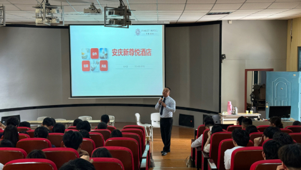 下午1点半,安庆香澜豪庭酒店、安庆世纪缘国际酒店、合肥丰大国际酒店等十家企业进场宣讲,每个酒店都对自己岗位需求、企业文化以及学生关心的职业发展、食宿安排等方面做了详细的介绍。