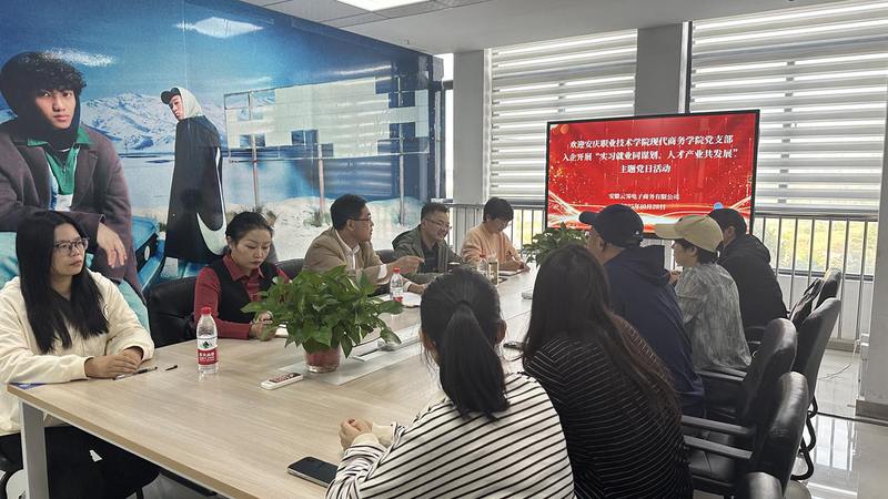 10月28日,安庆职业技术学院现代商务学院党总支组织部分党员教师,前往安徽云霁电子商务有限公司,开展“实习就业同谋划,人才产业共发展”主题党日活动。