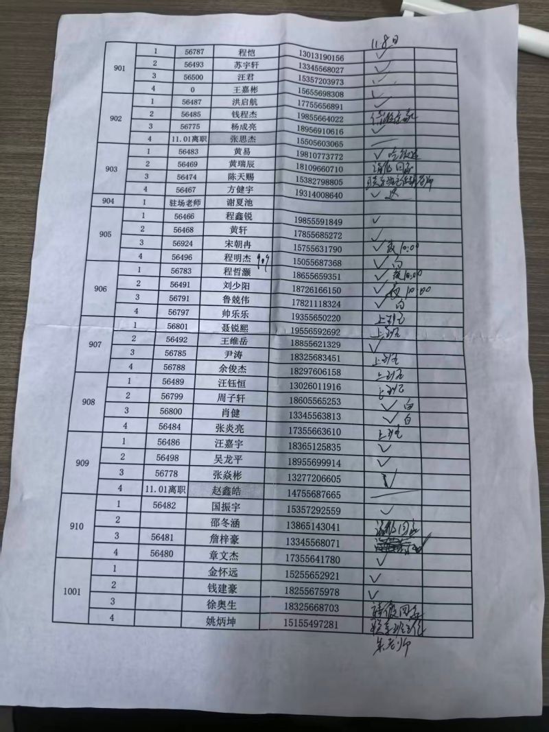 为切实筑牢学生实习安全防线,10月18日、10月25日、11月1日晚、11月3日下午、11月8日晚、11月9日下午和晚上、11月10日下午、11月19日晚,安庆工业学校招就科负责同志,采取“四不两直”方式深入振宜汽车制造有限公司,对正在岗位实习学生进行安全专项突击检查,重点排查岗位操作规范、出勤情况、上下班交通安全、宿舍住宿安全等关键环节。